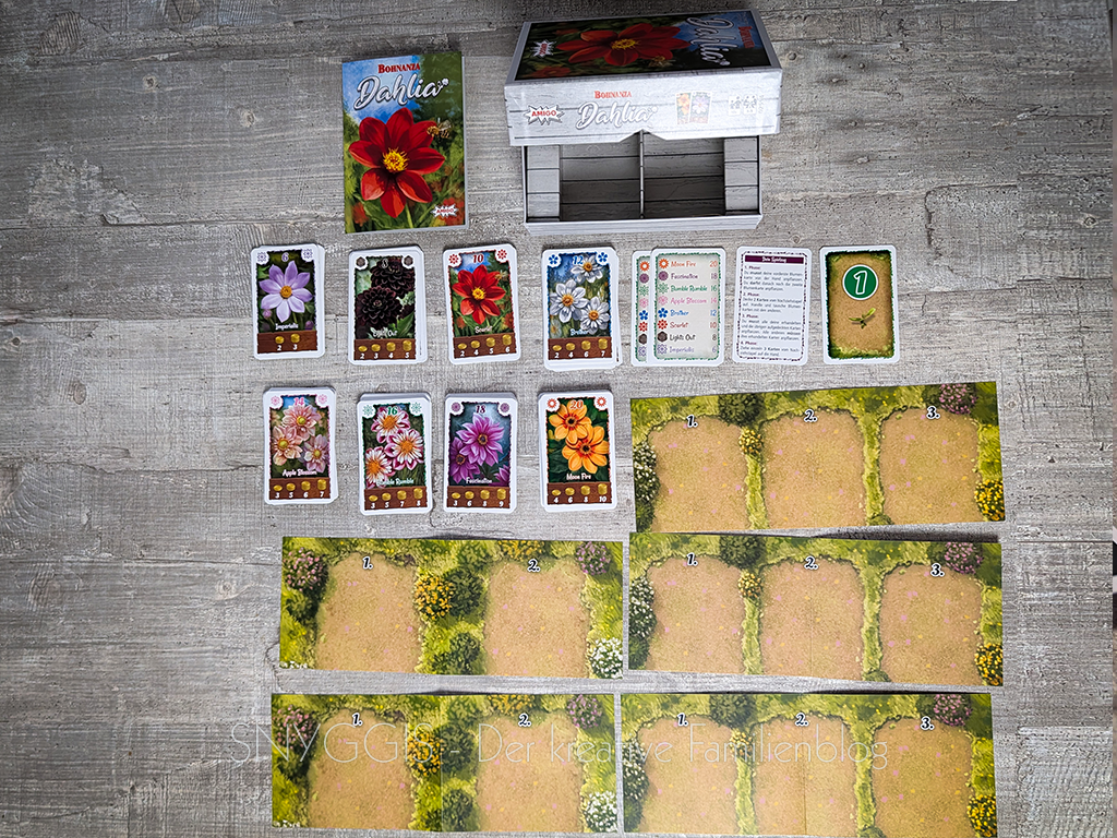 - 110 Spielkarten (104 Blumenkarten, 5 Übersichtskarten und 1 Start-Karte)