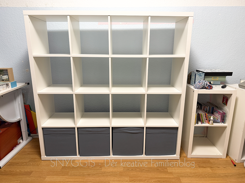 ich baue zuhause derweil ein neues Regal auf, das wir Mini-Snyggis quasi zu Ostern schenken. Unsere Tochter geht auf die 12 zu und wünscht sich peu a peu ein kleines Room-Make-Over. Also gehen wir das Schritt für Schritt an.