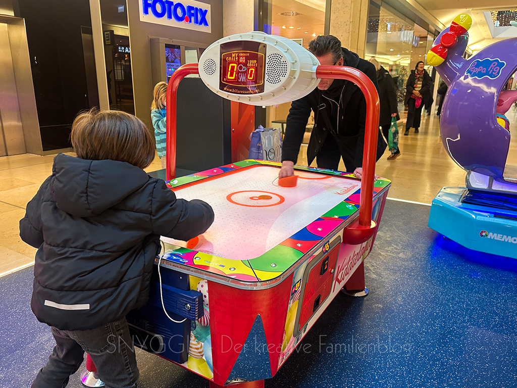 Zeit für Airhockey haben wir dann auch noch. Quietschi gewinnt sogar beim Airhockey gegen Papa 😉