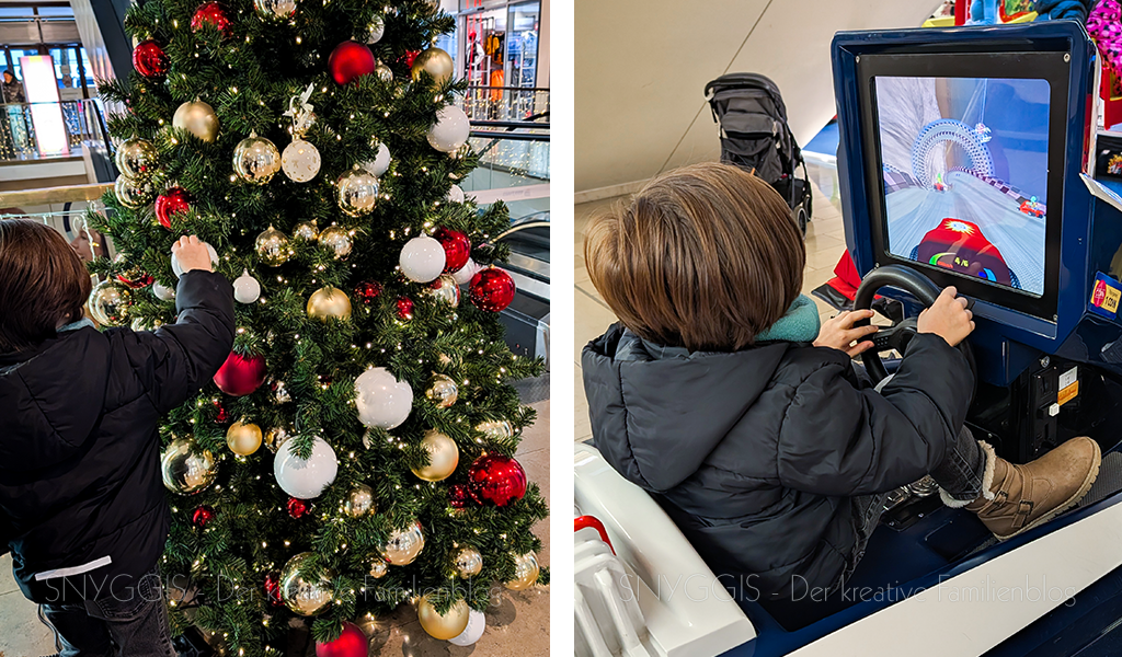 Dann machen wir uns auf den Weg in die Einkaufstraße. Alles ist schön geschmückt und Zeit fürs Autofahren haben wir auch mitgebracht.