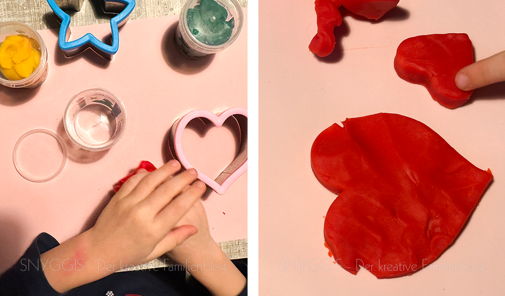 Wir Eltern freuen uns, dass dies so möglich war und wir am Samstag nicht durch die ganze Stadt juckeln müssen. Mini-Snyggis findet es auch mal ganz gut ohne Eltern. Quietschi freut sich stressfrei in den Tag zu starten und spielt mit Knete.