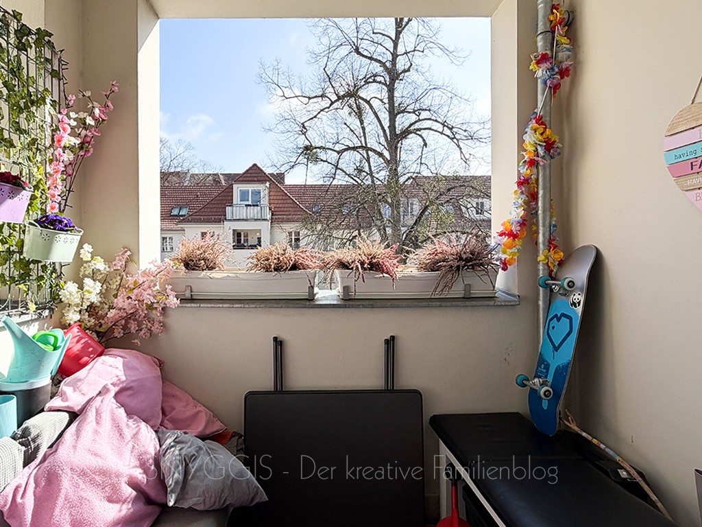 Ich mache aber dafür unseren Balkon etwas frühlingsfein. Und mir kommen ein paar Ideen, die wir dann demnächst umsetzen könnten 😉
