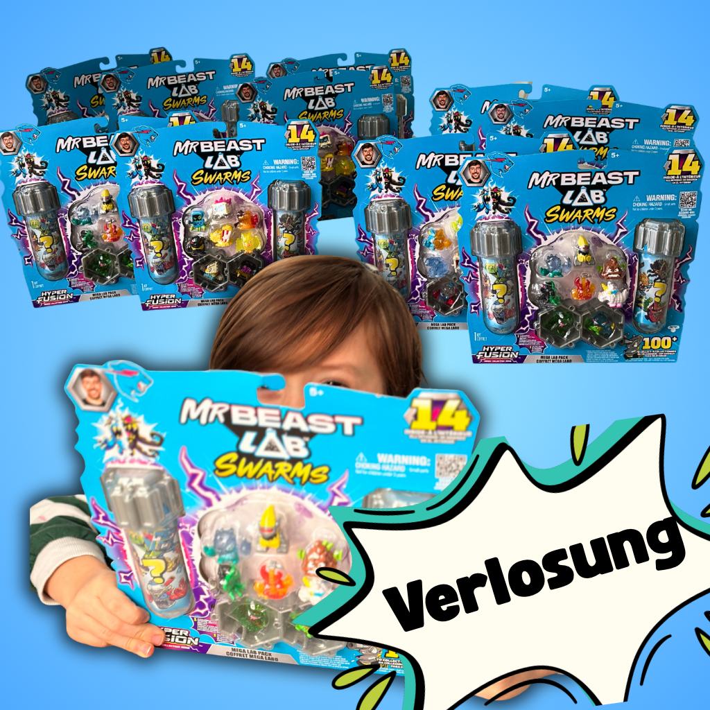 Ihr wollt an der Verlosung teilnehmen? Hier ist eure Chance eins von 5 Doppelpacks von MrBeast Lab Swarms Hyper Fusion zu gewinnen. (Ein Mega Lab Pack hat einen Warenwert von 24,99 Euro – Das Doppelpack, das ihr jeweils gewinnen könnt somit im Wert von knapp 50 Euro). Alle Teilnehmerlose von Instagram und Blog wandern in einen gemeinsamen Lostopf. Ihr könnt also zwei Lose einwerfen.