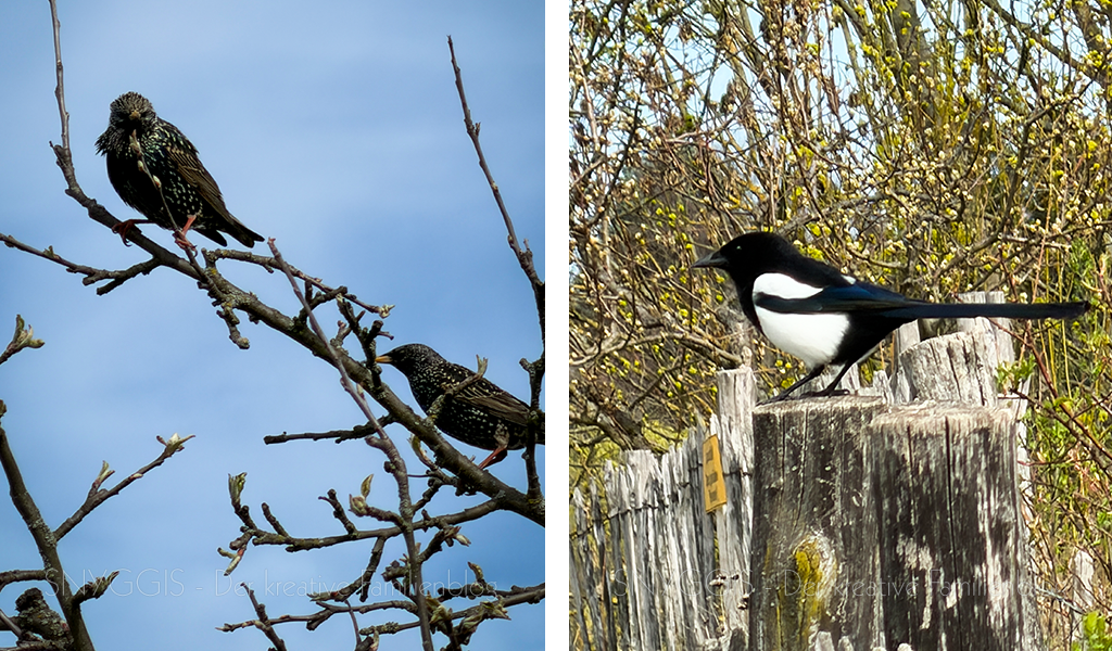 Bei einer kleinen Rast mit Brotzeit beobachten wir eine Elster und zwei Stare.