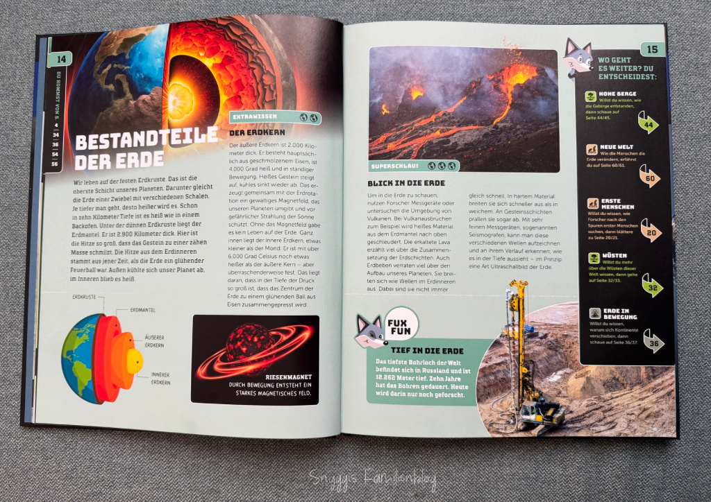 Kosmos SchlauFux ist eine neue interaktive Buchreihe des Kosmos Verlags für neugierige Köpfe ab 8 Jahren. Jedes Buch der Buchreihe befasst sich mit Themen aus Natur und Wissenschaft und lädt zum Erkunden ein. Der Lesende kann das Buch ganz frei entdecken, da das Konzept der Bücher es ermöglicht die Seiten unabhängig voneinander zu lesen. Einfach das Buch aufschlagen und loslegen wo man will. Es gibt viel Wissen und spannende Bilder zu entdecken. Heute möchte ich dir aus der smarten Buchreihe das Buch Unsere Erde – Kosmos SchlauFux vorstellen.