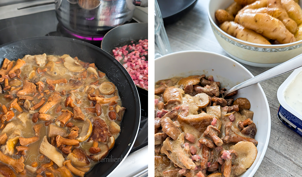 Zum Mittag gibt es wieder Kartoffeln. Heute aber mit einer leckeren Pilzpfanne 🙂