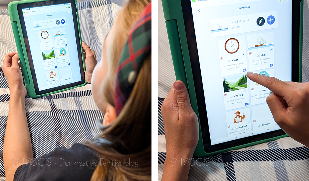 Am Abend lernt Mini-Snyggis noch Englisch Vokabeln mit ihrer Lernapp. Dort gibt es nicht nur zu allen Fächern Lernvideos, Übungen und Arbeitsblätter, sondern auch Vokabeltrainer, Rechtschreibtrainer und Klassenarbeitstrainer. Sofatutor – All-in-One-Lösung für Schulkinder. Mit meinem Link könnt ihr das Lernprogramm 30 Tage kostenlos testen* und erhaltet nach der Testphase 80% Rabatt.