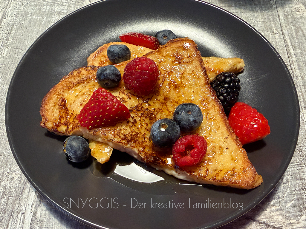 Heute bereite ich mit beiden Kindern gemeinsam das Frühstück vor. Es gibt French Toast/Arme Ritter. So lecker! Das hatte ich zuletzt in meiner Kindheit gemacht.