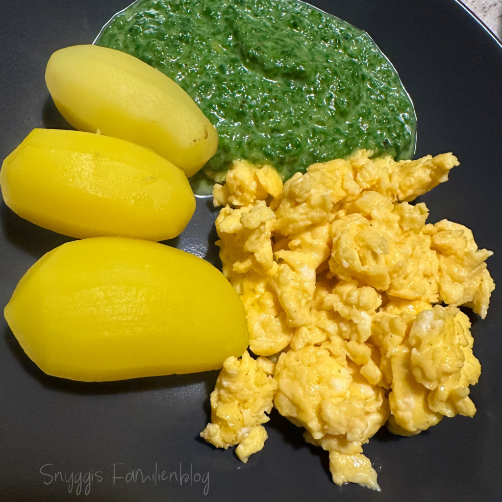 Wochenplan: Tag 3 – Mittwoch: Unser Alltags-Lieblingsessen: Rahmspinat mit Kartoffeln und Rührei